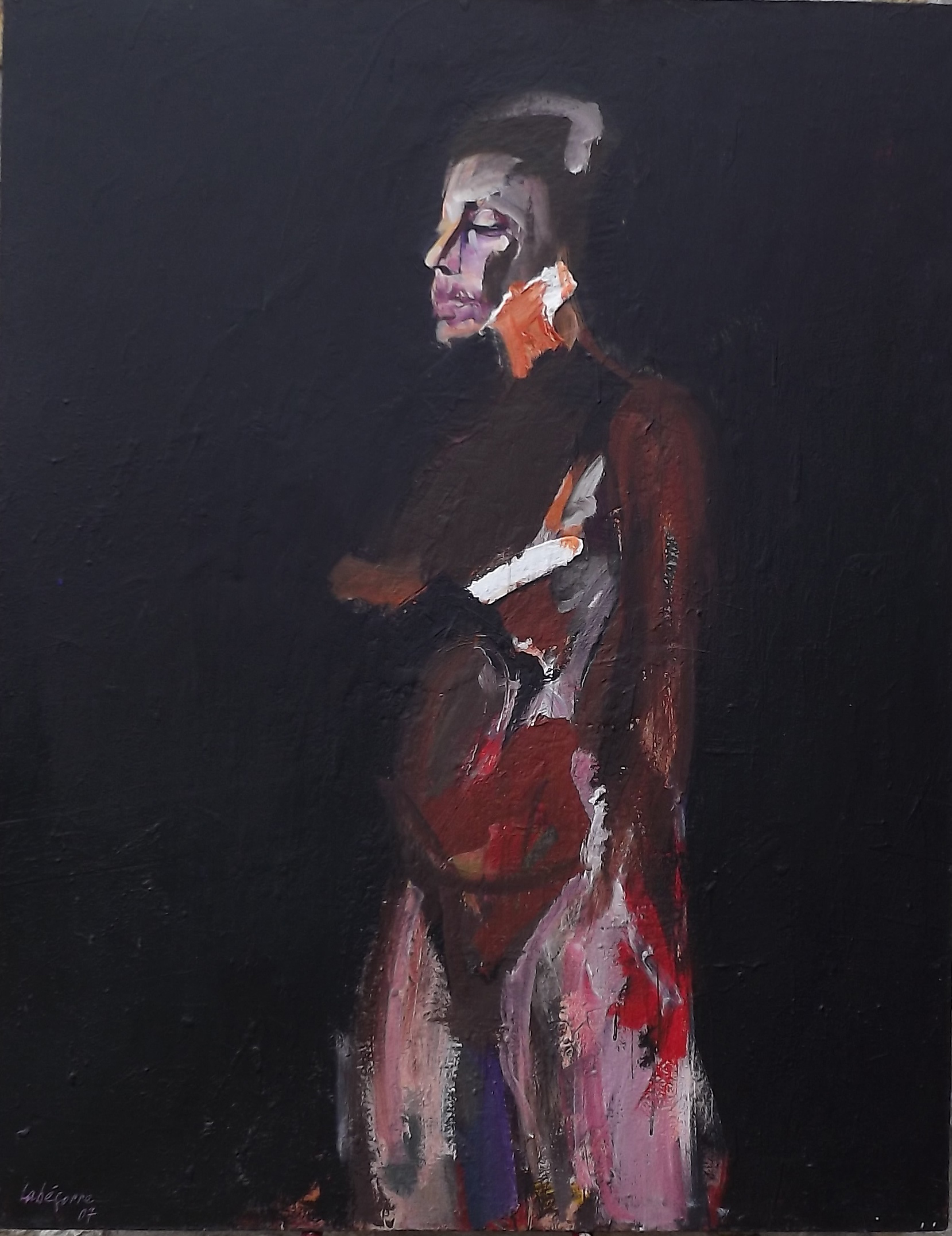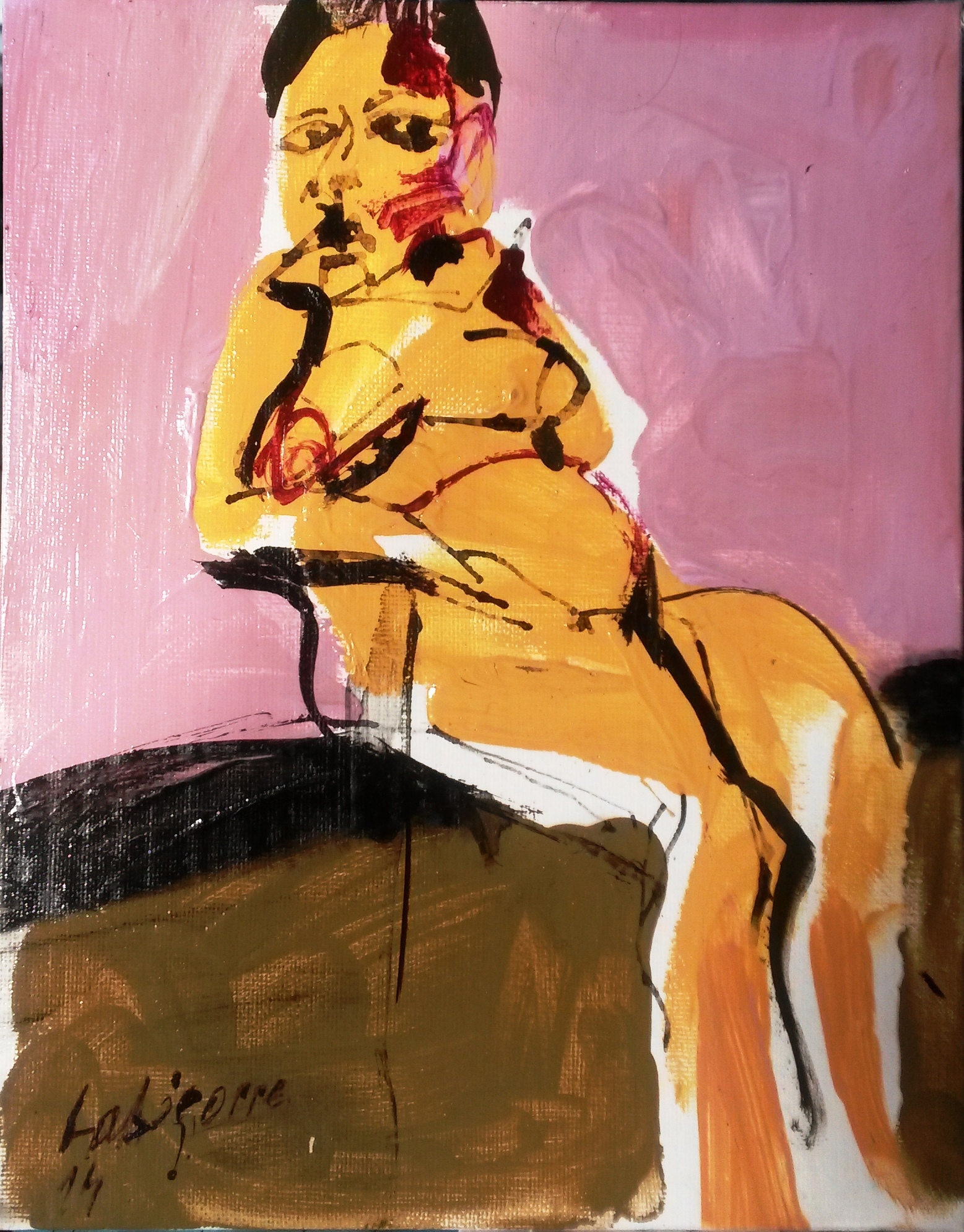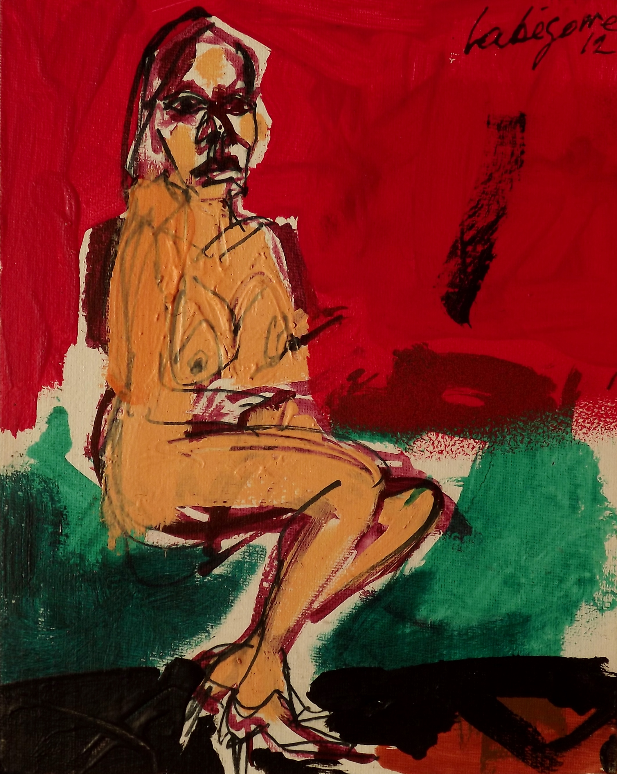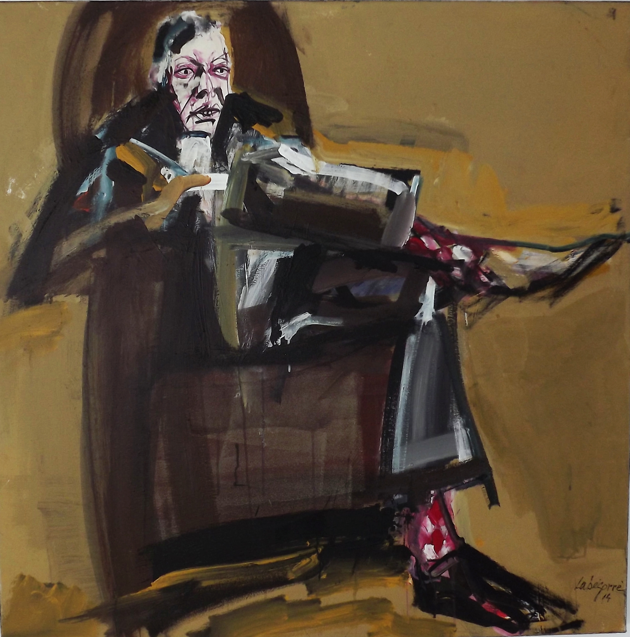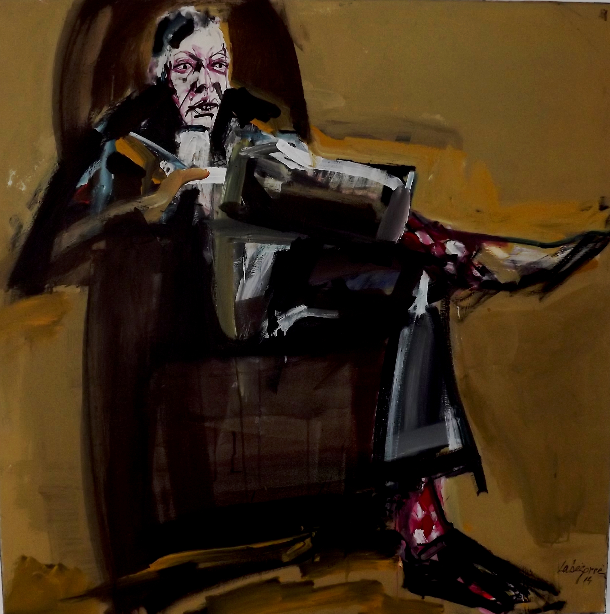 « La peinture n’est pas, n’a jamais été une imitation des apparences, mais la traduction par des formes et des couleurs de ce qui ne se voit pas, c’est à dire la tension irréductible de l’homme vers ce qui le dépasse, son désir absolu qui le déchire ; c’est ce désir habité d’éternité qui est sa réalité. Et c’est bien ce déchirement et cette souffrance qui font la dignité de l’homme, que j’aime approcher. » Serge Labégorre